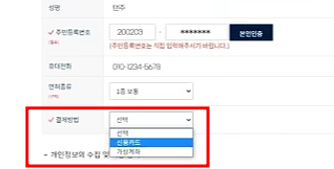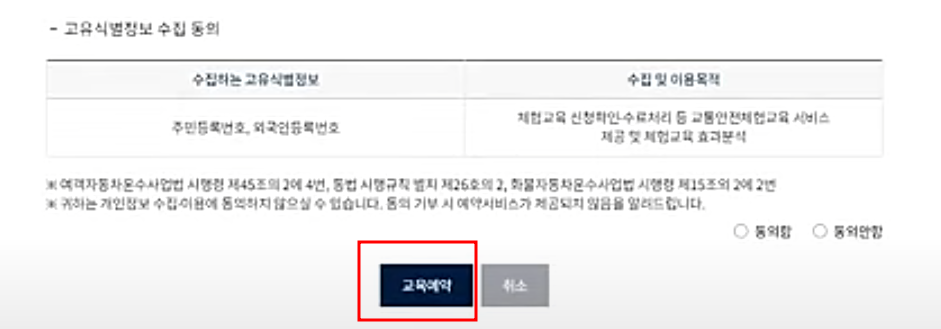 3. 하단에서 결제방법 선택 후 교육예약 선택