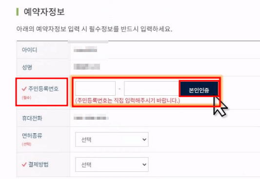 5. '주민등록번호' 입력 후 '본인인증'을 진행합니다.