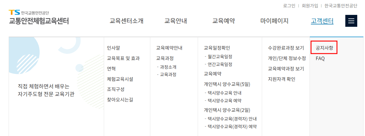 1. 교통안전체험교육센터 홈페이지 로그인하기