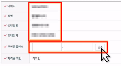 7. '아이디, 성명, 생년월일, 휴대전화 번호'가 맞는지 확인합니다.