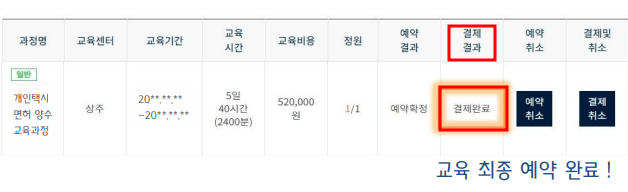 8. 마지막으로 '교육예약' 클릭 후 '확인'을 눌러줍니다.