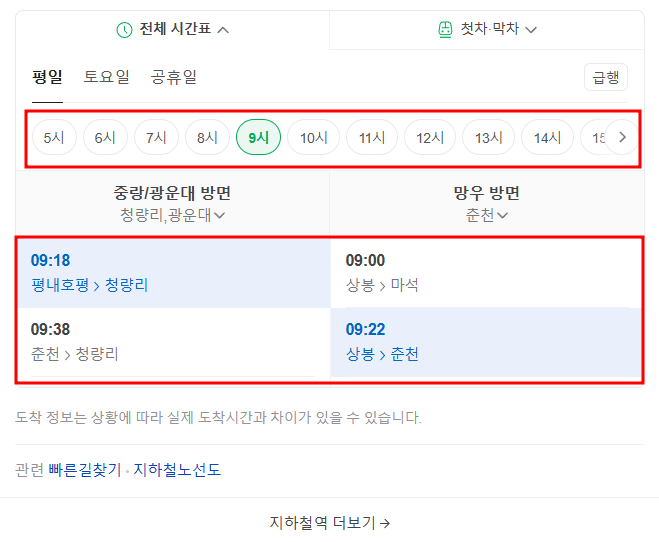 네이버를 이용해서 경춘선 시간표를 보는 방법이 있습니다.