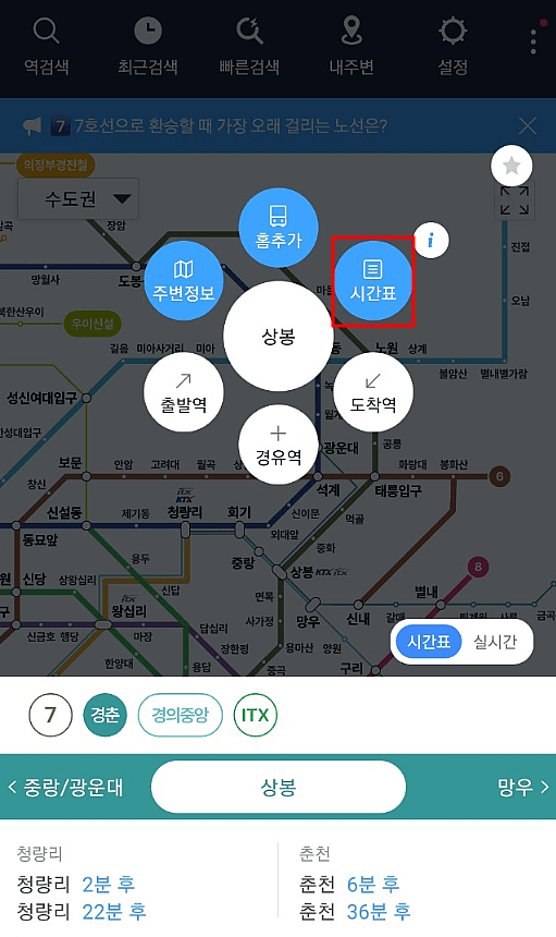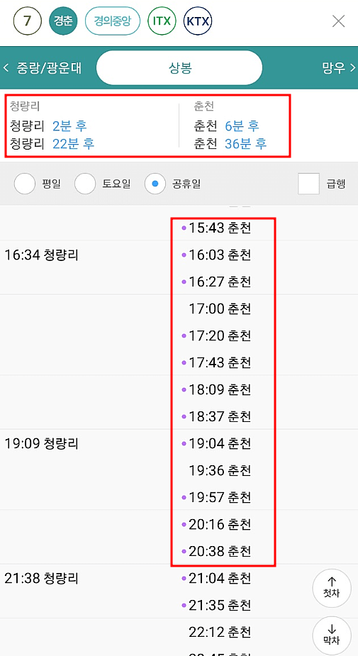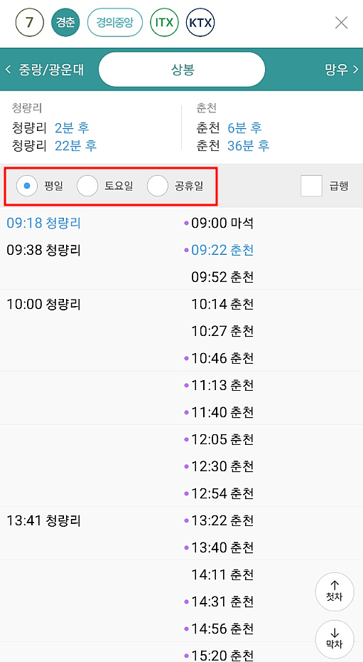 오늘 경춘선 시간표를 실시간 확인하는 방법 2가지를 알아봤습니다.