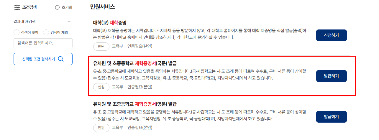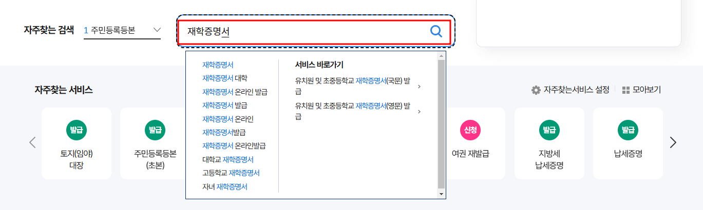 2. 재학증명서를 검색합니다.