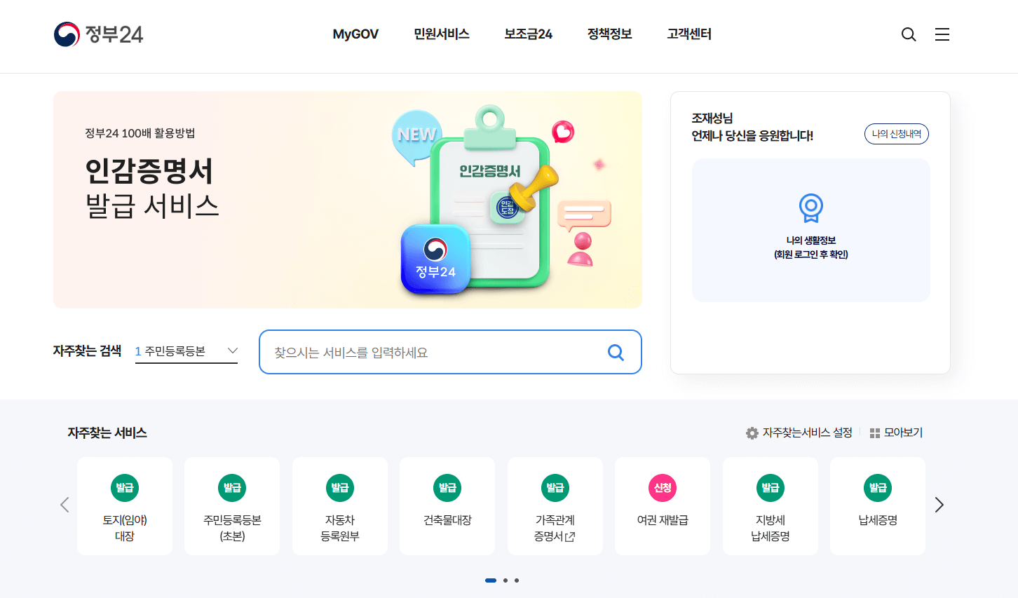 1. 정부24 홈페이지에 접속합니다.