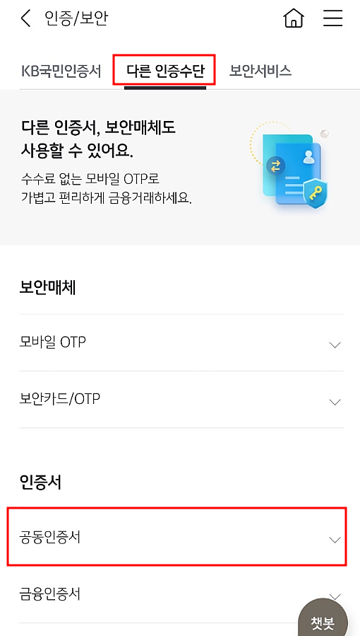 4. 다른 인증 수단 -> 공동인증서를 클릭합니다.