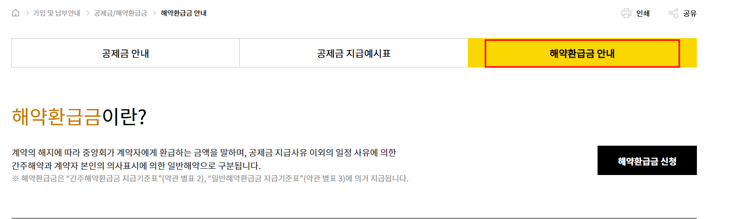 노란우산공제 해약환급금 유형 해지 방법