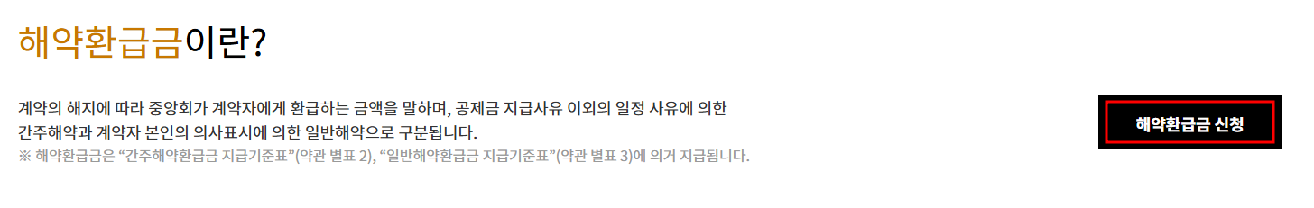 4. 해약환급금 신청을 눌러줍니다.