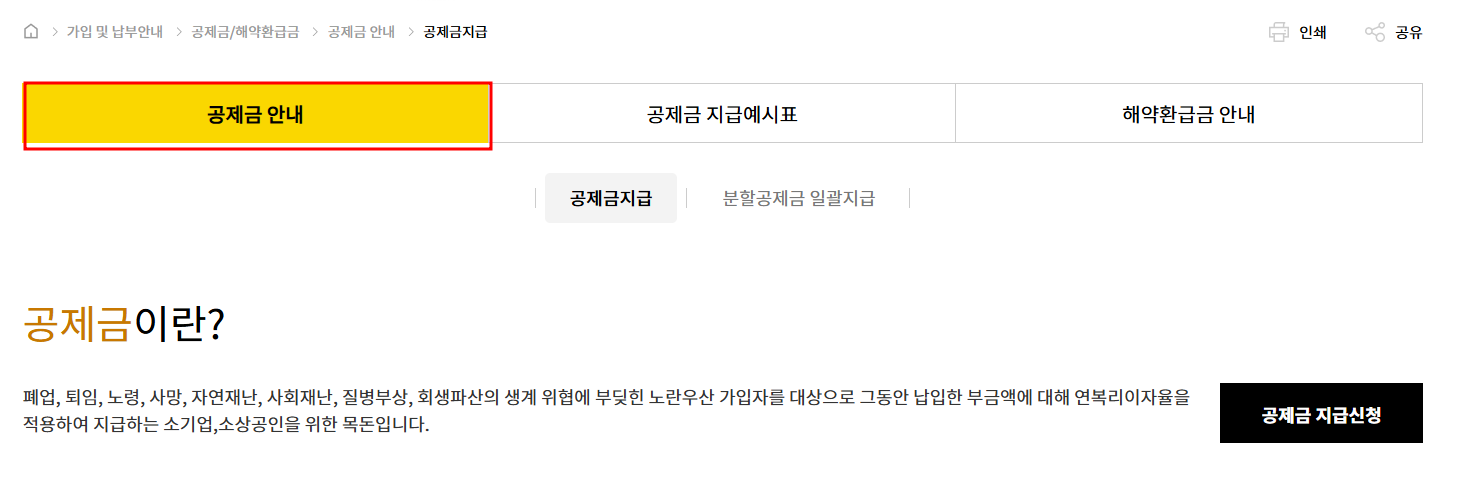 노란우산공제 공제금 유형 해지 방법