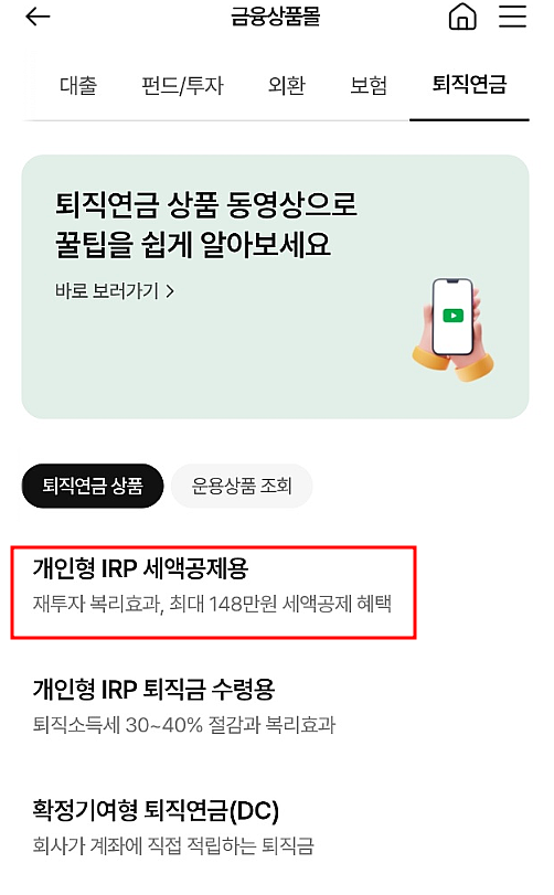 4. 개인형 IRP 세액공제용을 클릭합니다.