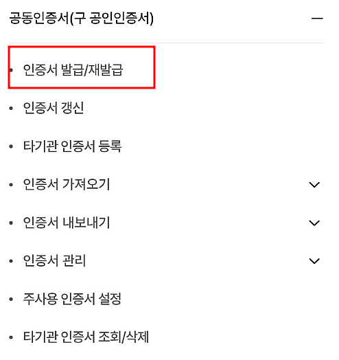 3. 인증서 발급/재발급을 선택합니다.