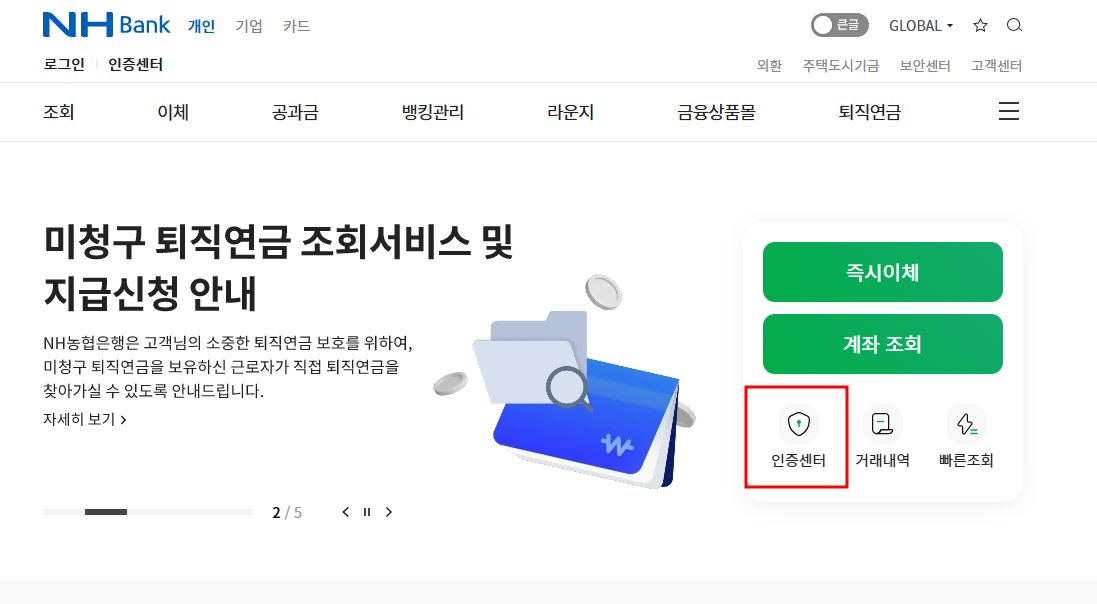 1. 농협은행 홈페이지에 접속합니다.