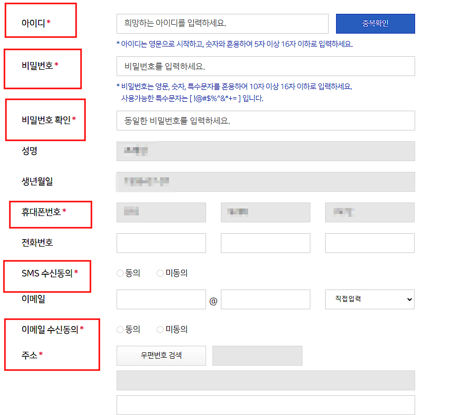 * 기존가입자는 개인정보 등 변경 시 마이페이지에서 변경가능합니다.