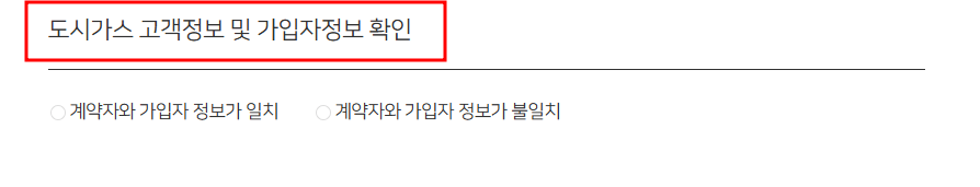 9. 도시가스 계약자와 가입자 정보 일치 여부를 선택합니다.