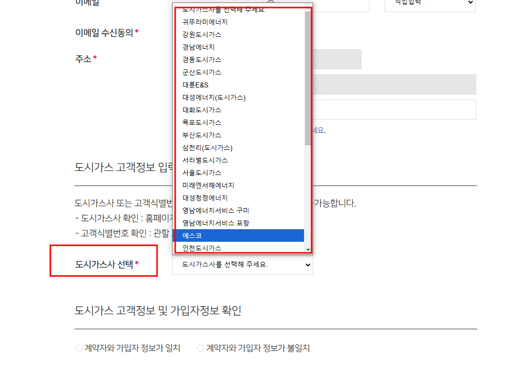 7. 도시가스사를 선택합니다.