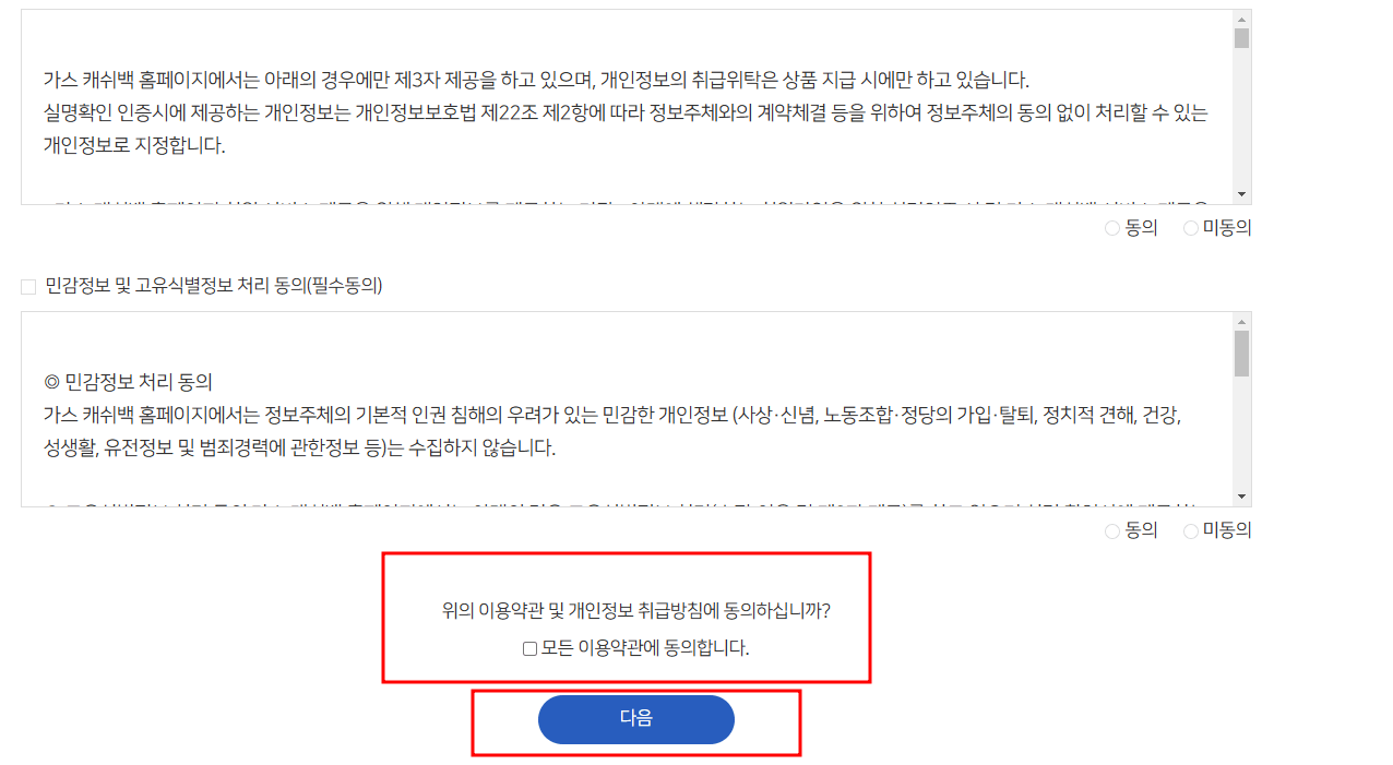 4. 약관 동의 후 다음을 눌러줍니다.