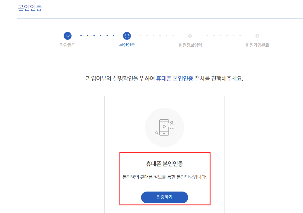 5. 휴대폰으로 본인인증을 합니다.