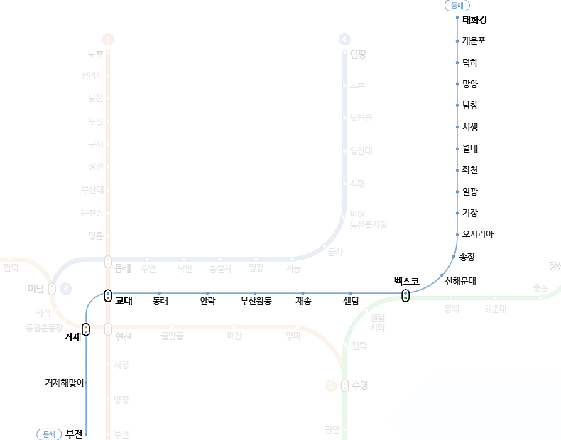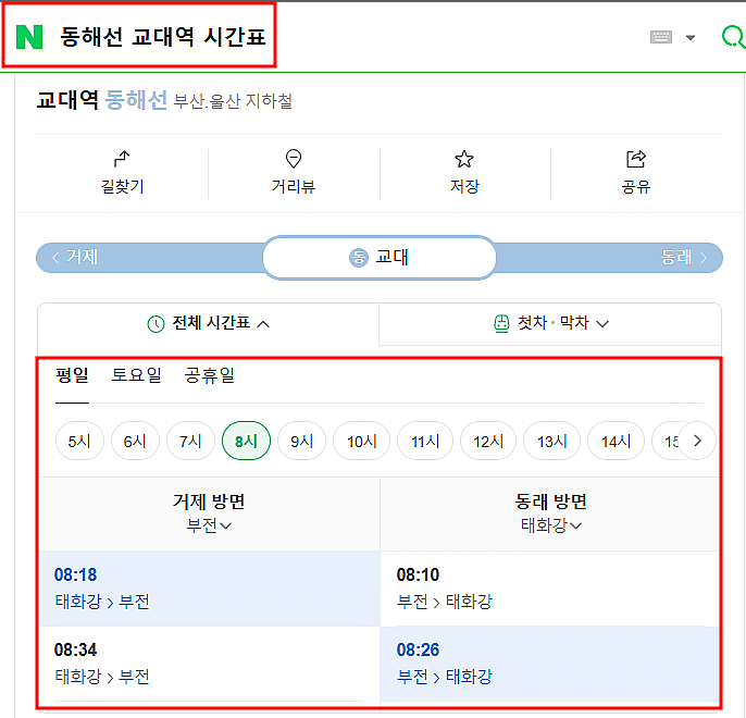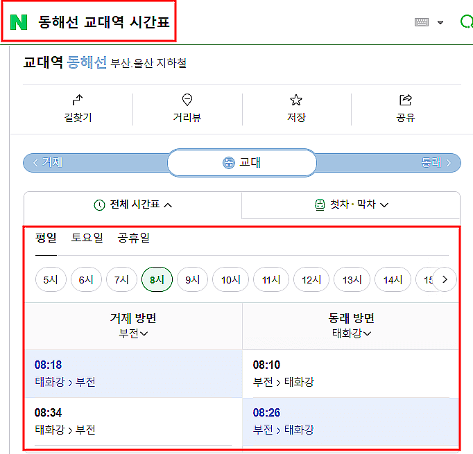 부산이 처음이라서 동해선을 잘 모른다면, 동해선 노선도를 보고 현재 위치와 출발역을 확인한 후 시간표를 확인하면 됩니다.