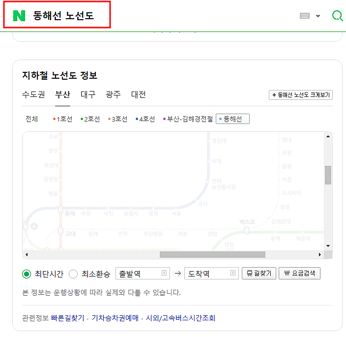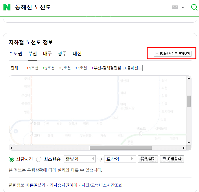3. '동해선 노선도 크게보기'를 클릭합니다.