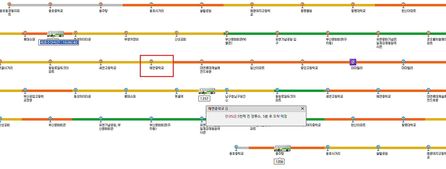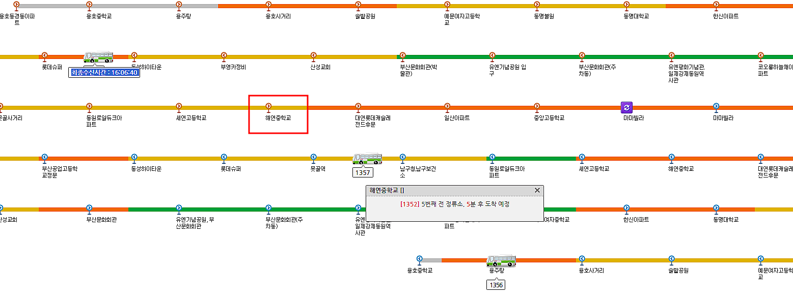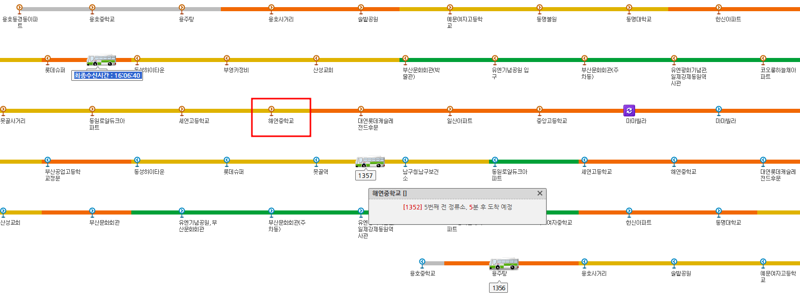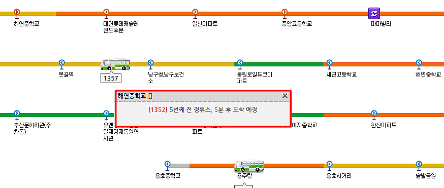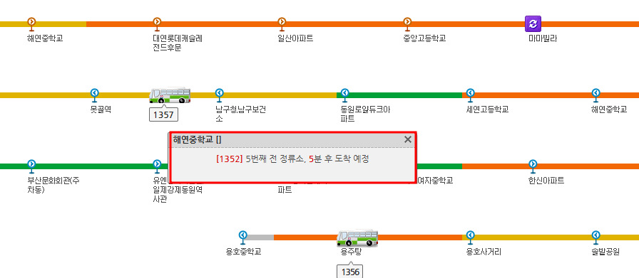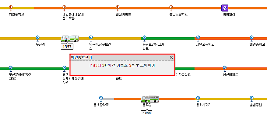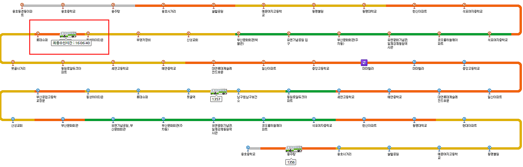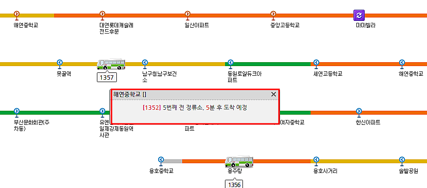 4. 버스 노선도와 함께 버스 실시간 위치를 확인할 수 있습니다.