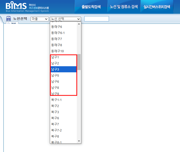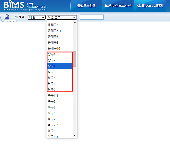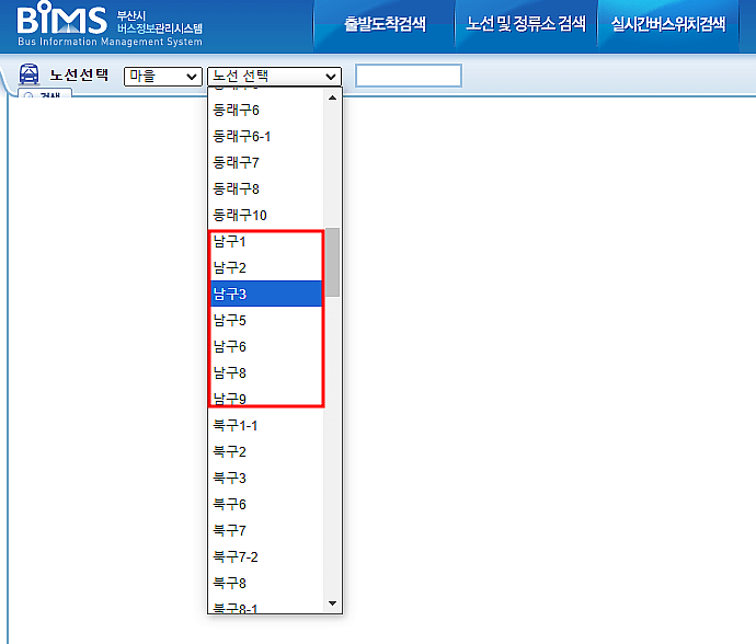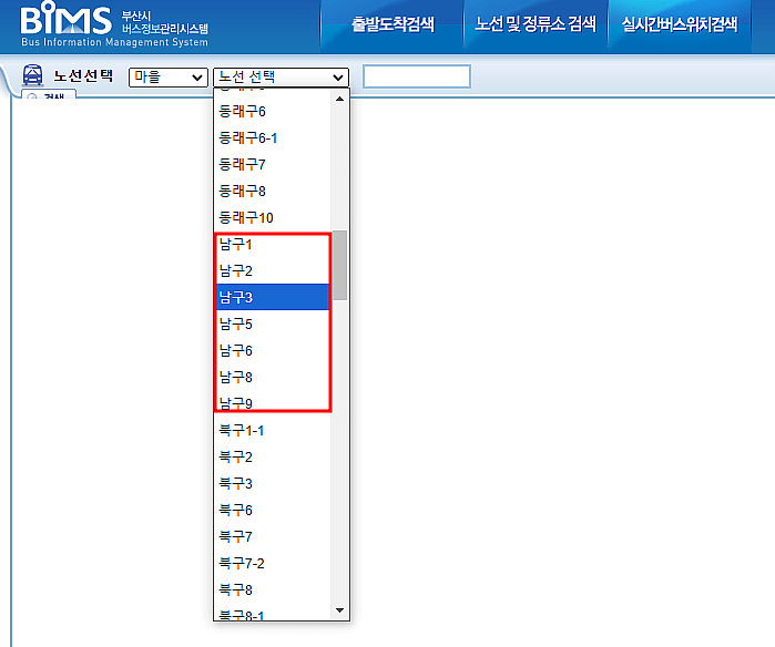 1. BIMS 부산시 버스정보관리시스템 홈페이지에 접속합니다.