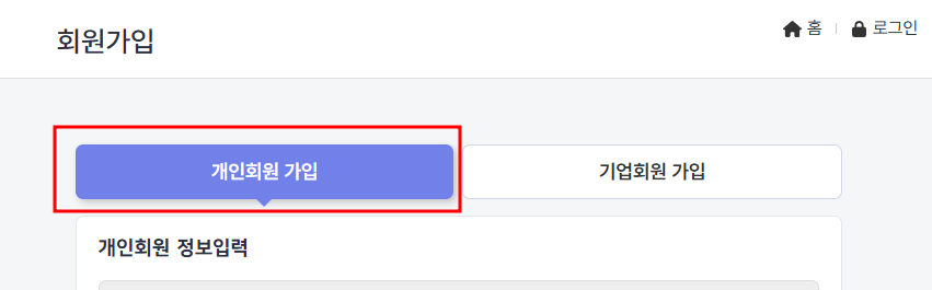1. 홈페이지 상단에서 회원가입을 클릭합니다.