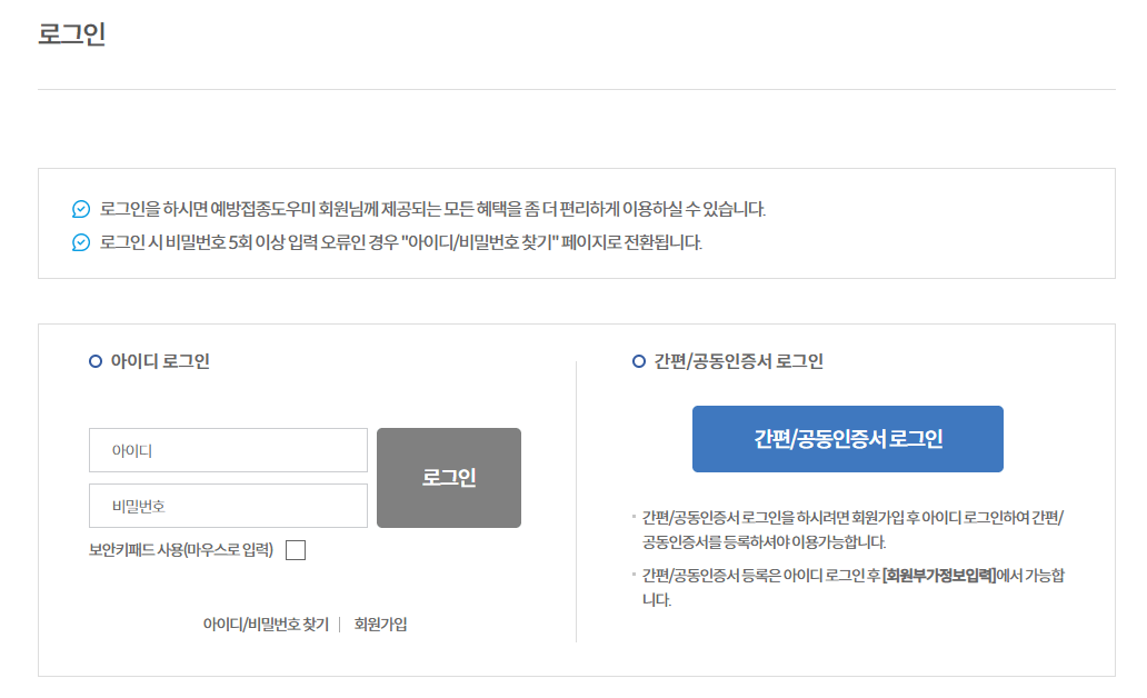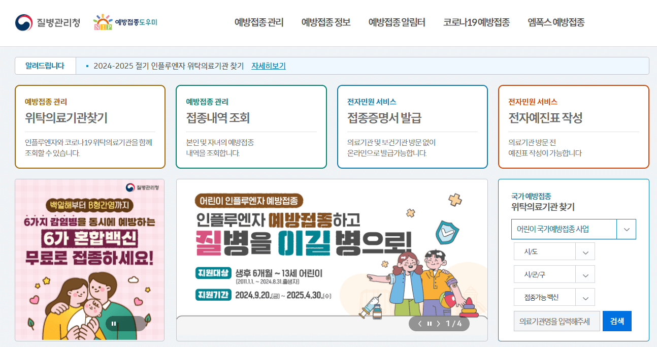 1. 예방접종도우미 홈페이지에 들어갑니다.