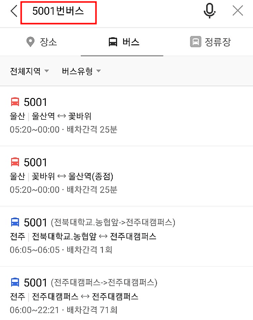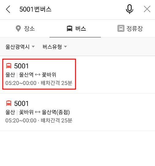 2. 버스 번호를 검색합니다.