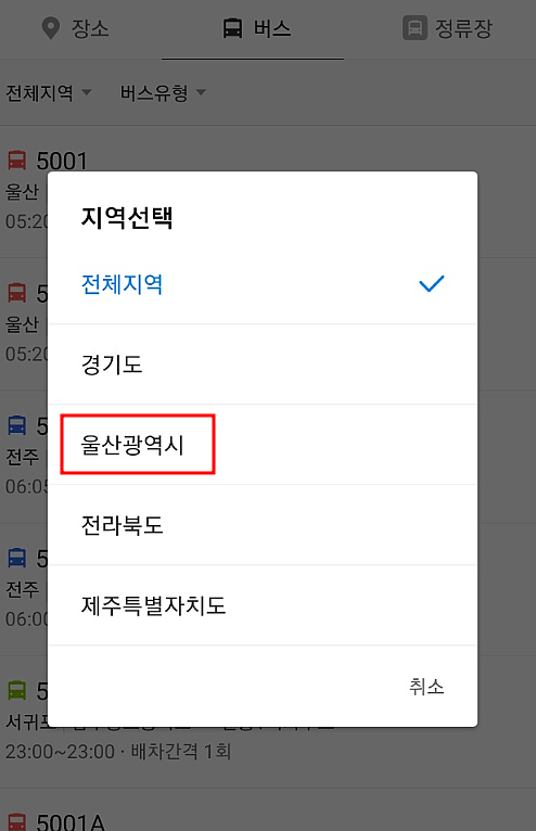 4. 울산광역시를 선택합니다.