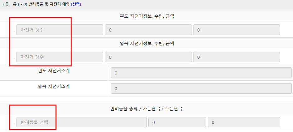 9. 반려동물 또는 자전거가 있다면 정보를 작성합니다.