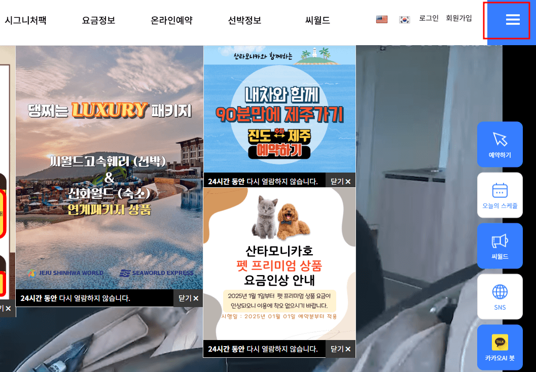 1. '씨월드소고훼리주식회사 홈페이지'에 접속합니다.