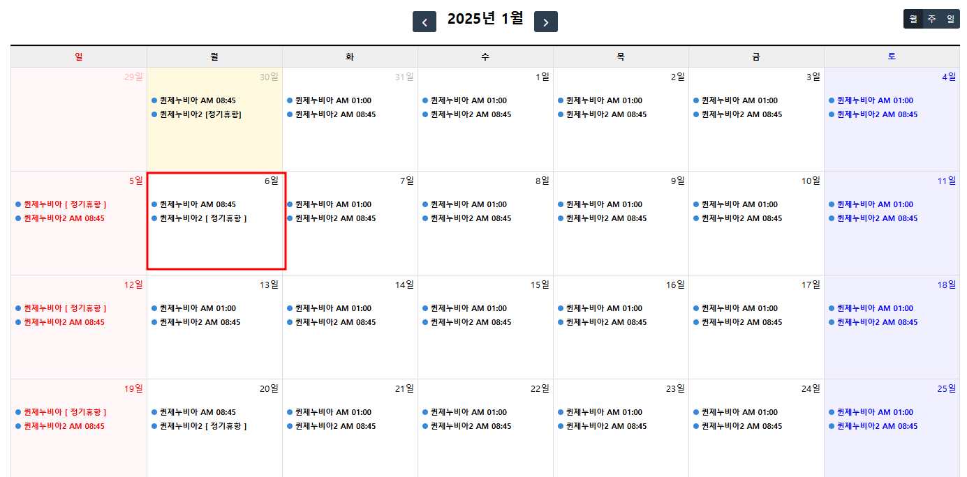 4. 원하는 날짜의 운행시간을 확인할 수 있습니다.