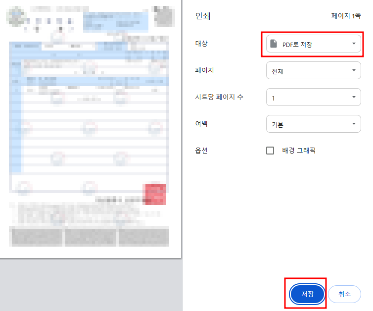 10. PDF로 저장 선택 후 저장을 클릭합니다.