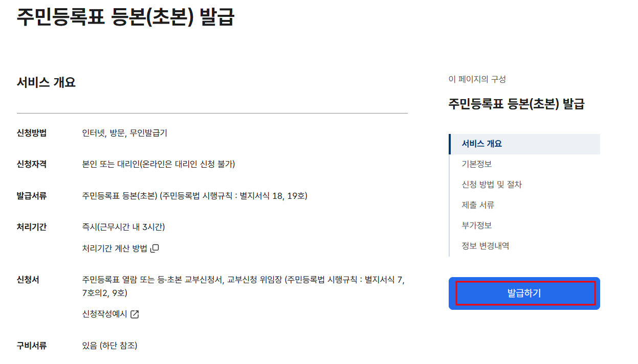 3. 메뉴에서 주민등록등본 발급을 클릭합니다.