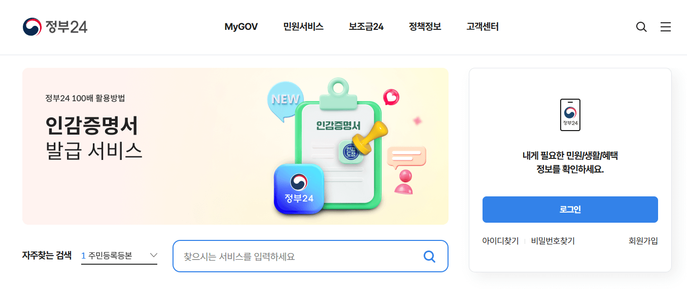 1. 정부24 홈페이지에 접속합니다.
