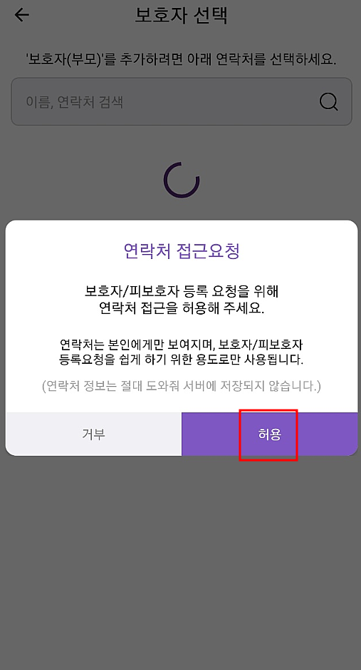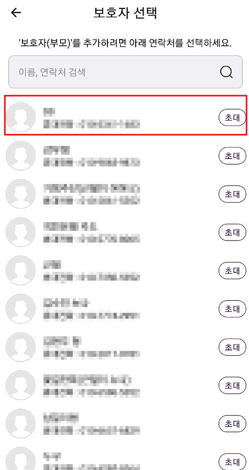 7. 연락처에서 원하는 보호자를 초대합니다.
