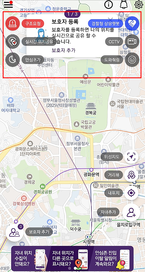 8. 위치공유, 구조요청, 안심귀가 등 다양한 기능을 활용할 수 있습니다.