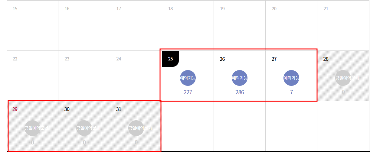 5. 1월로 날짜를 바꾸면 예약가능한 날짜를 볼 수 있습니다.