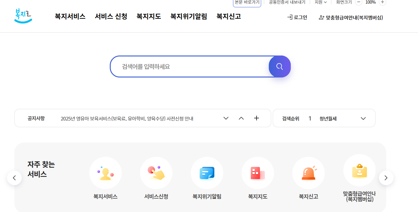 1. 복지로 홈페이지에 접속합니다.