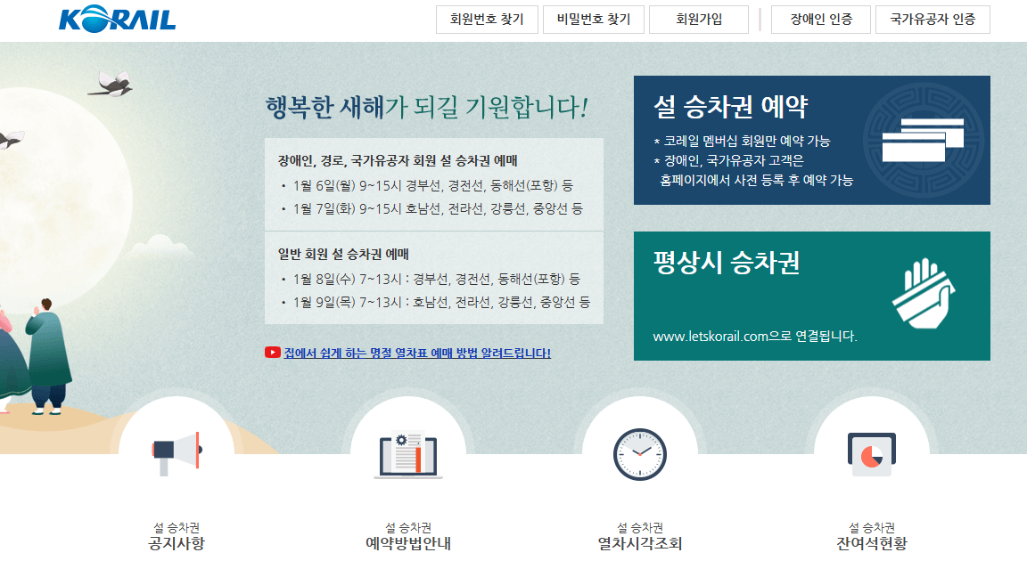 KTX 설날 기차표 일반예매는 설 명절 예매 전용 홈페이지에서만 예매 가능하니, 이 점을 꼭 기억하시길 바랍니다.