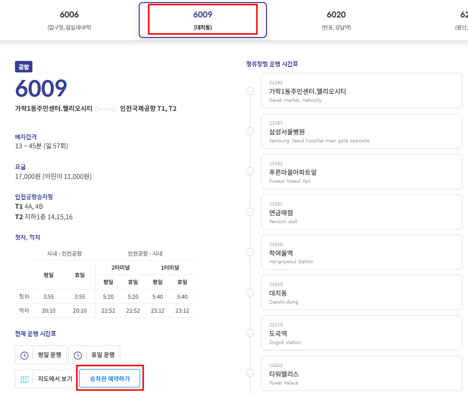 3. 6009번 버스 -> 승차권 예약하기를 클릭합니다.