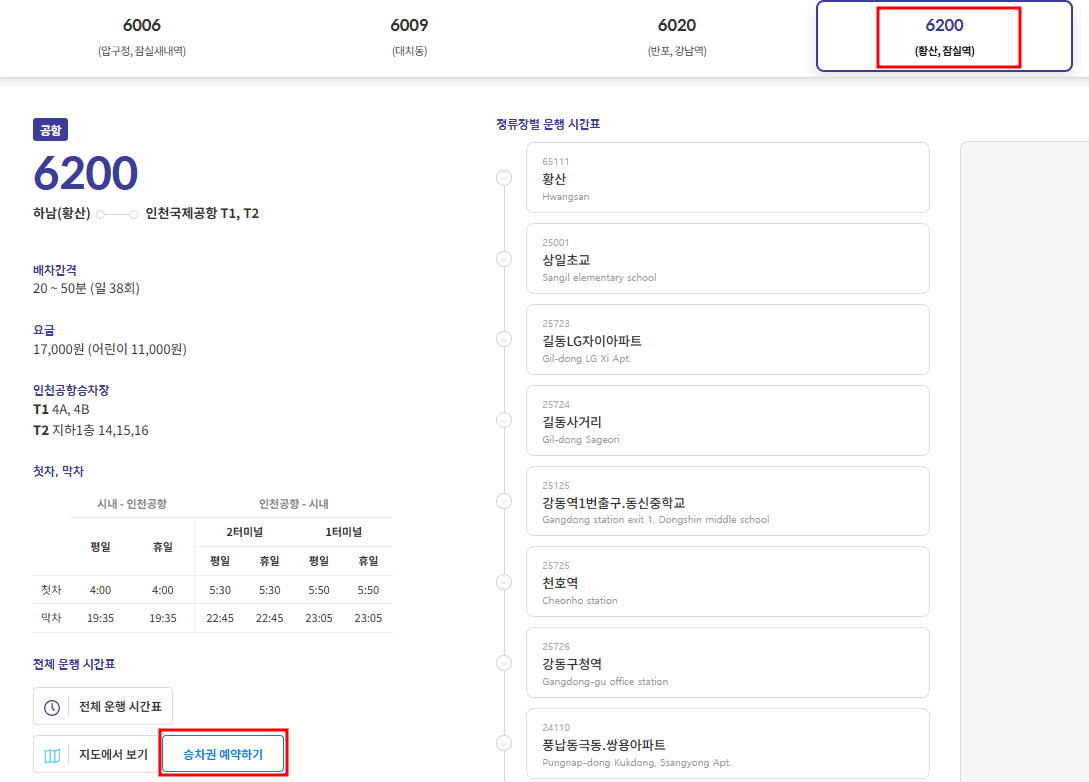 6200번 공항버스 예매하기