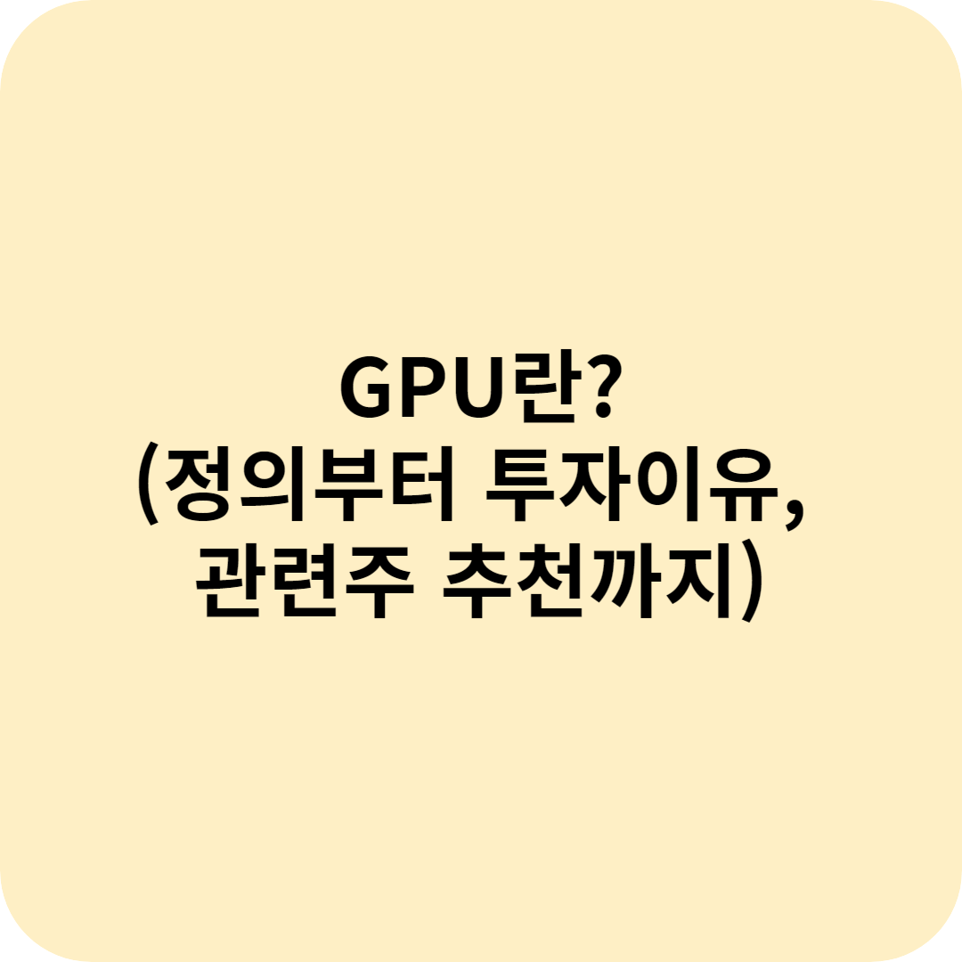 AI 기술이 발달하면서 GPU의 중요성과 수요가 급증하면서 엔디비아의 주가가 올라가고 있습니다. AI 발달과 GPU가 어떤 연관이 있는지 알아보기 위해 GPU의 정의부터 CPU와 차이, 투자 이유, 엔디비아외에 어떤 관련주등이 있는지 알아보겠습니다.